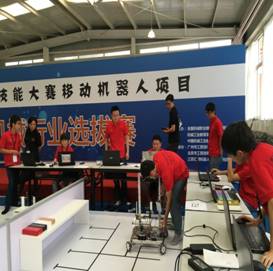 2016年7月16-17日,由全国机械职业教育教学指导委员会、机械工业发展教育发展中心和中国机械工业教育协会主办的第44届世界技能大赛全国机械行业选拔赛“移动机器人”项目在北京工贸技师学院举行。本次竞赛汇集了广州、无锡、常州、长春、云南、徐州、武汉、宁波、石首、北京等十个地市的42个代表队。大赛严格遵循世界技能大赛的标准,进行竞赛环境和赛场布置,设置竞赛观摩区,观众们可以在场地周围观摩比赛,竞赛试题和评分标准也参照世界技能大赛技术标准执行;所采用的裁判都是来自行业企业最高水平的专家。比赛从上午8点开始,一直持续到下午6点,选手要在规定的时间内完成模块A:移动机器人基本功能测试和模块B:功能测试—物品搬运两项任务。我校代表队经过为期两天的比赛,荣获三等奖。