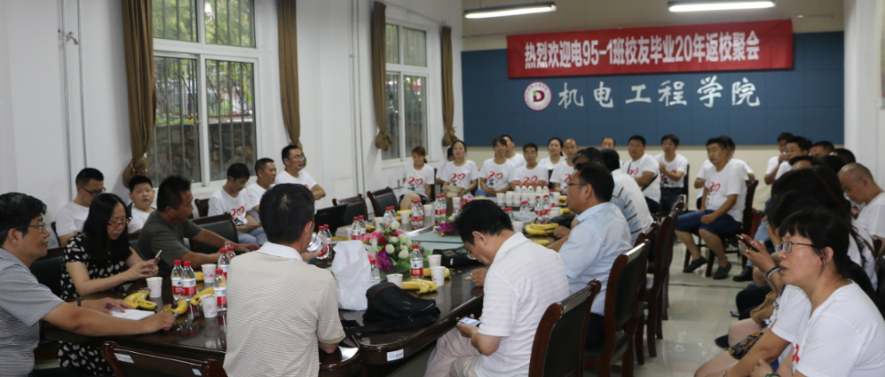 2017年7月15日下午,机电工程学院原电95-1班30余名校友回到阔别已久的母校,追忆同窗旧事,畅谈人生感悟,展望美好未来。机电工程学院党总支书记潘峰、院长仇文宁、退二线老领导张君伟和部分原班级任课教师、辅导员出席了此次聚会。