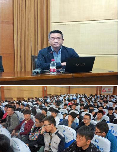 2017年10月23日下午5点,机电工程学院隆重邀请杰出企业代表苏州科固电器有限公司总经理蒋振文先生为我院2018届毕业生作就业形势分析报告,机电工程学院党总支潘峰书记、机电工程学院仇文宁院长、17届校友程志鹏及部分毕业班主任出席了会议,机电学院2018届全体毕业生参加了会议。