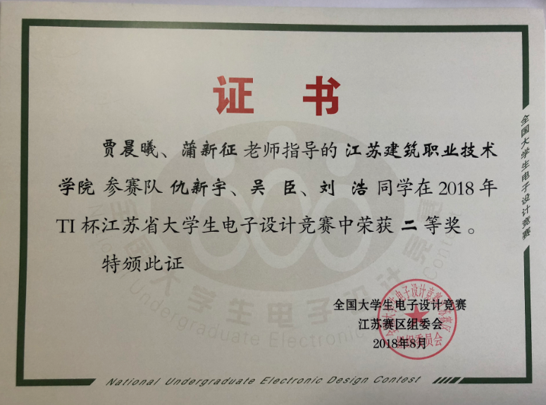 全国大学生电子设计竞赛是教育部倡导的大学生学科竞赛之一,是面向大学生的群众性科技活动,目的在于推动高等学校促进信息与电子类学科课程体系和课程内容的改革,有助于高等学校实施素质教育,培养大学生的实践创新意识与基本能力、团队协作的人文精神和理论联系实际的学风。我院贾晨曦、蒲新征老师带领仇新宇、吴臣、刘浩三名同学代表18luck赞助于7月20-23日参加2018年江苏省大学生电子设计竞赛(TI杯)。经过半年的准备,克服了种种困难,四天三夜完成了比赛项目D题:手势识别装置的设计与制作,并最终获得了二等奖。