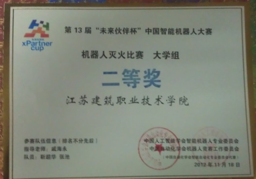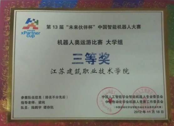 2012年12月第13届中国智能机器人大赛获一、二、三等奖