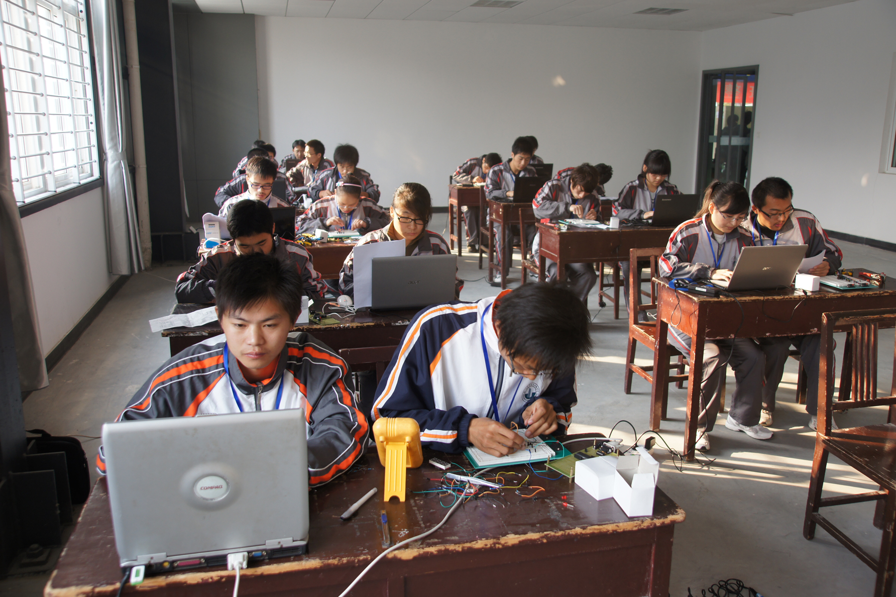 本次比赛分四个类别、八个项目。分别为:数控车技能、数控加工中心技能、普车技能、钳工技能、单片机技能、机器人画图技能、机器人寻迹技能、机器人创新设计成果展技能。共有674名学生参加决赛的比赛。大家对此次技能大赛充满希望,各各摩拳擦掌,跃跃欲试。