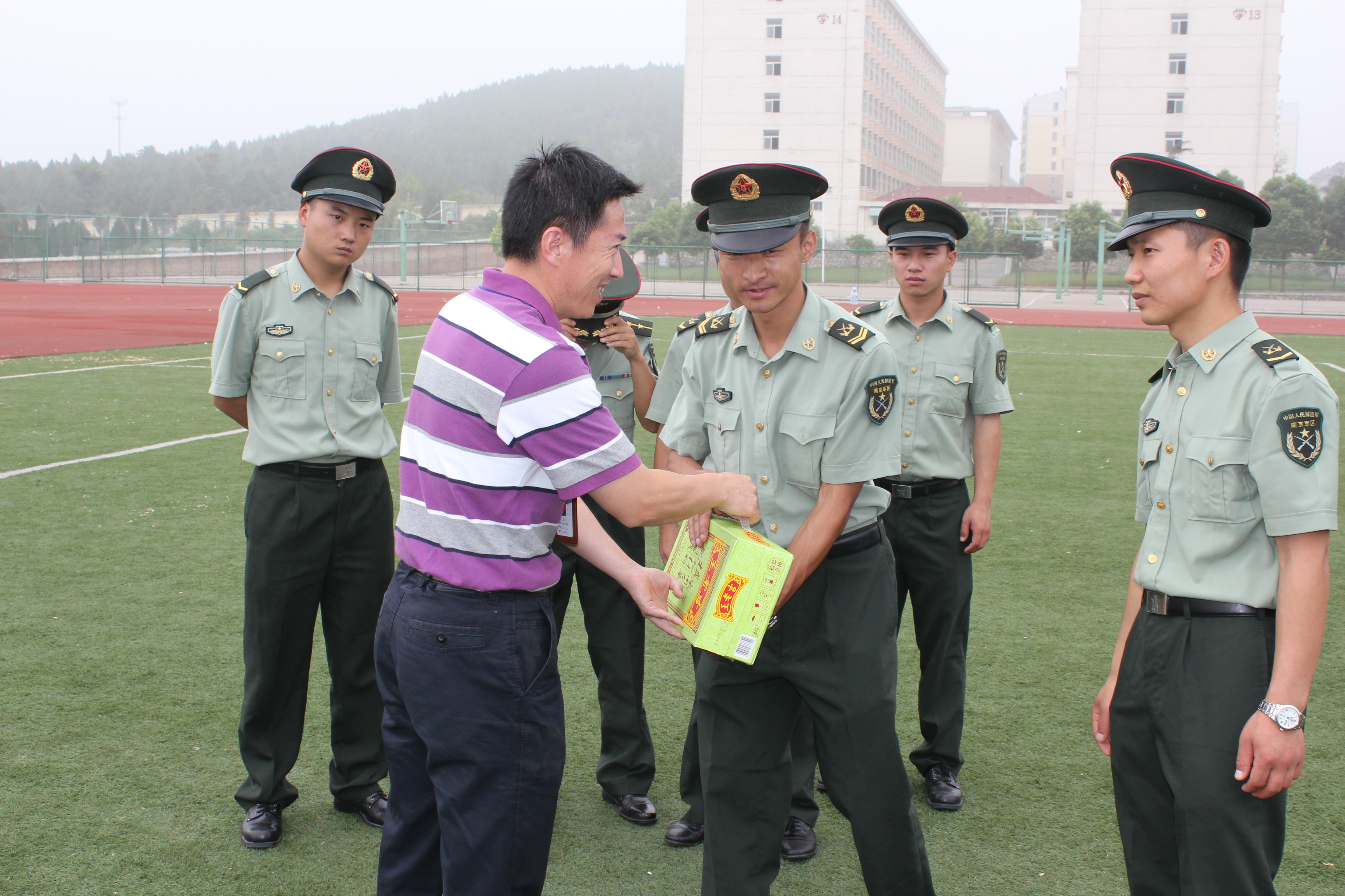 潘书记向军训教官赠送慰问品