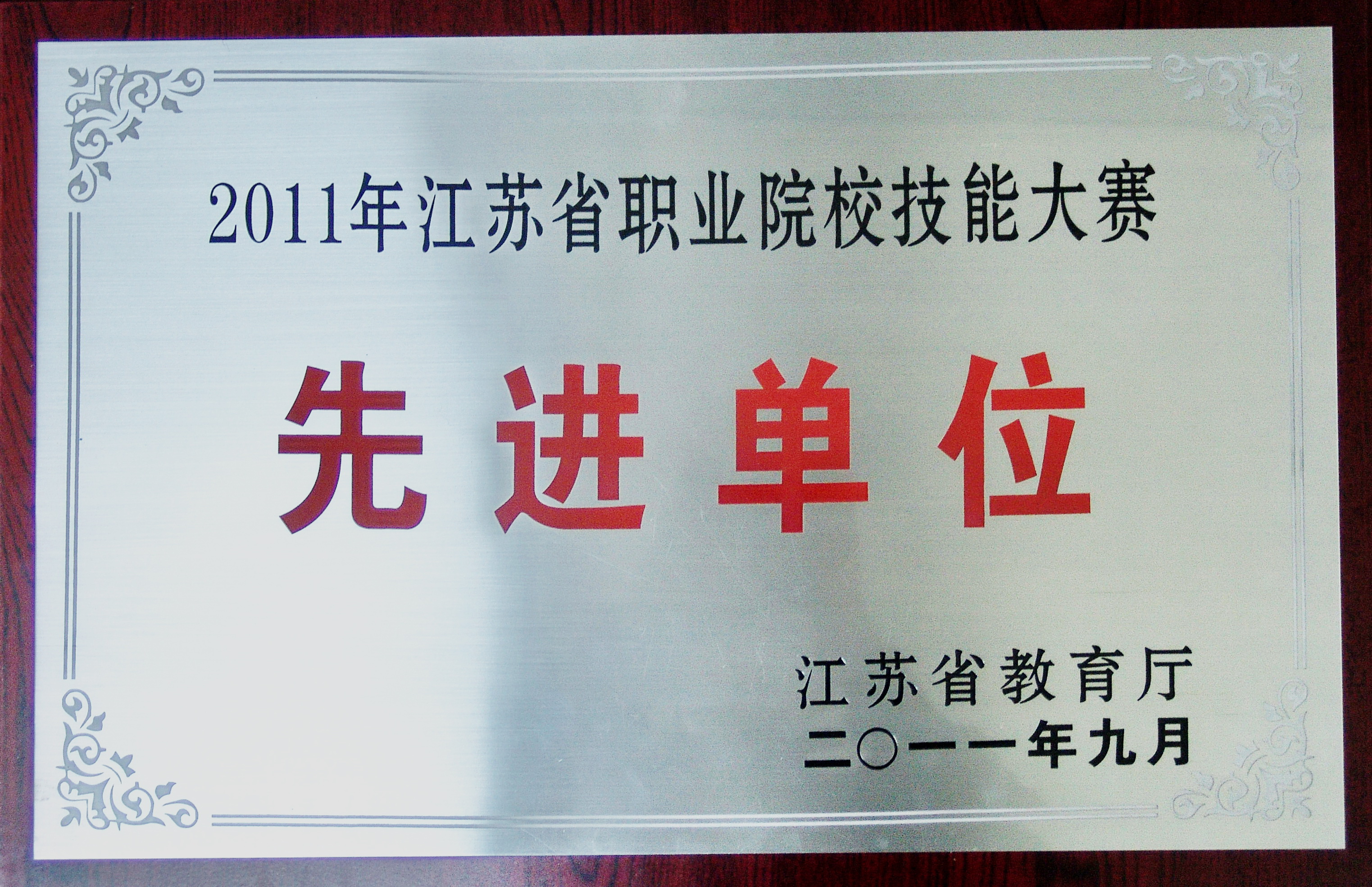 2011年6月在天津举办了由教育部职业教育与成人教育司主办的2011年全国职业院校技能大赛高职组“康尼”杯光伏发电系统安装与调试大赛,本次大赛有全国29个省、市、自治区组成52个代表队参赛,我院代表队由机电学院6名师生组成,经过了6个小时的拼搏,最终获得大赛三等奖,为江苏省及我校取得了荣誉。近日,江苏省教育厅授予我校2011年江苏省职业院校技能大赛先进单位荣誉称号。