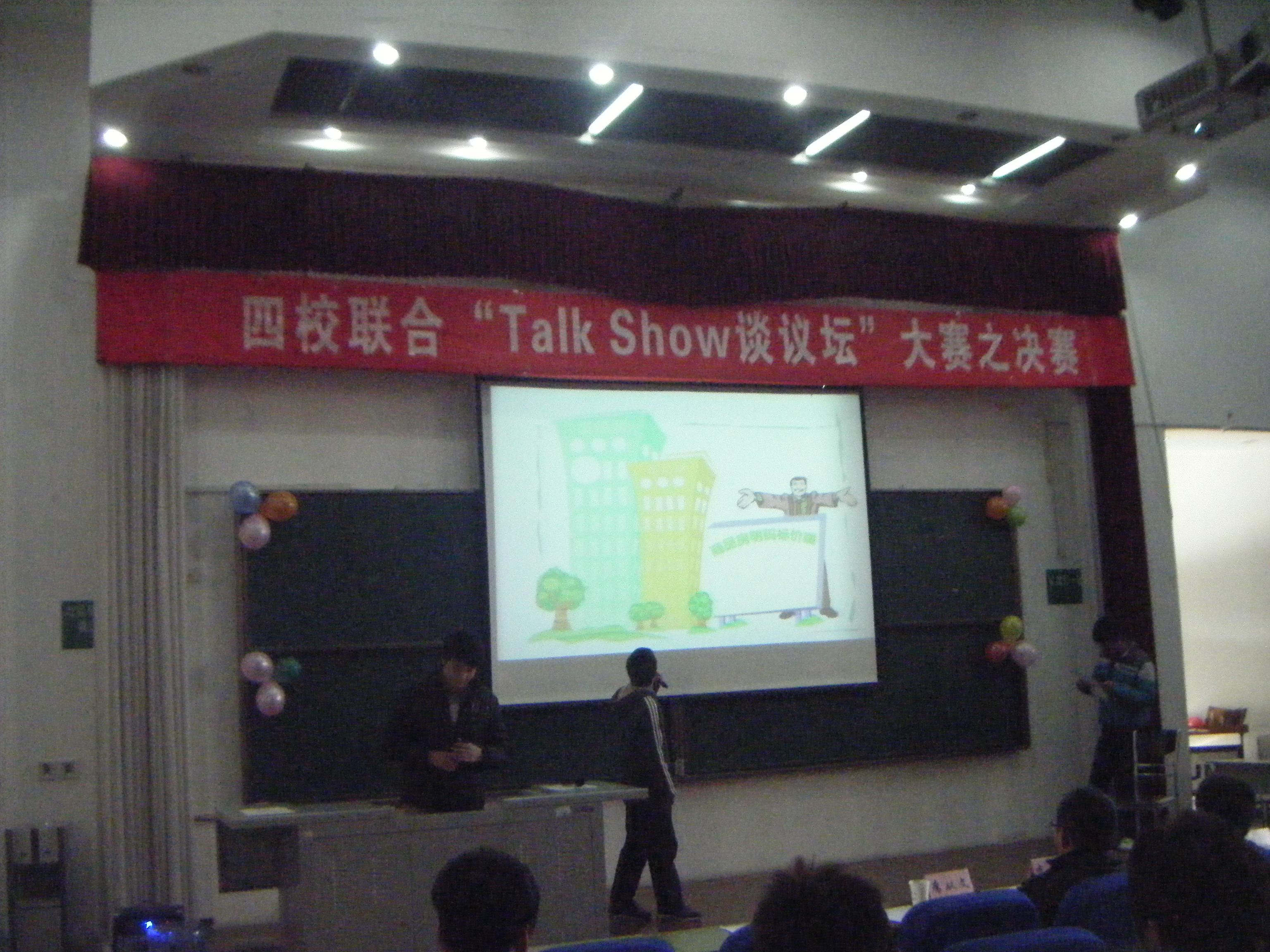 比赛于12月11日上午9点正式开始,四所高校共派出八支队伍参加比赛,比赛现场设在中国矿业大学。他们依次上场,针对娱乐、体育、温州动车事件等社会热点话题,发表了自己的见解。其中我院代表队的作品“婚姻法”、“中国房价论”分别获得了二等奖和三等奖。
