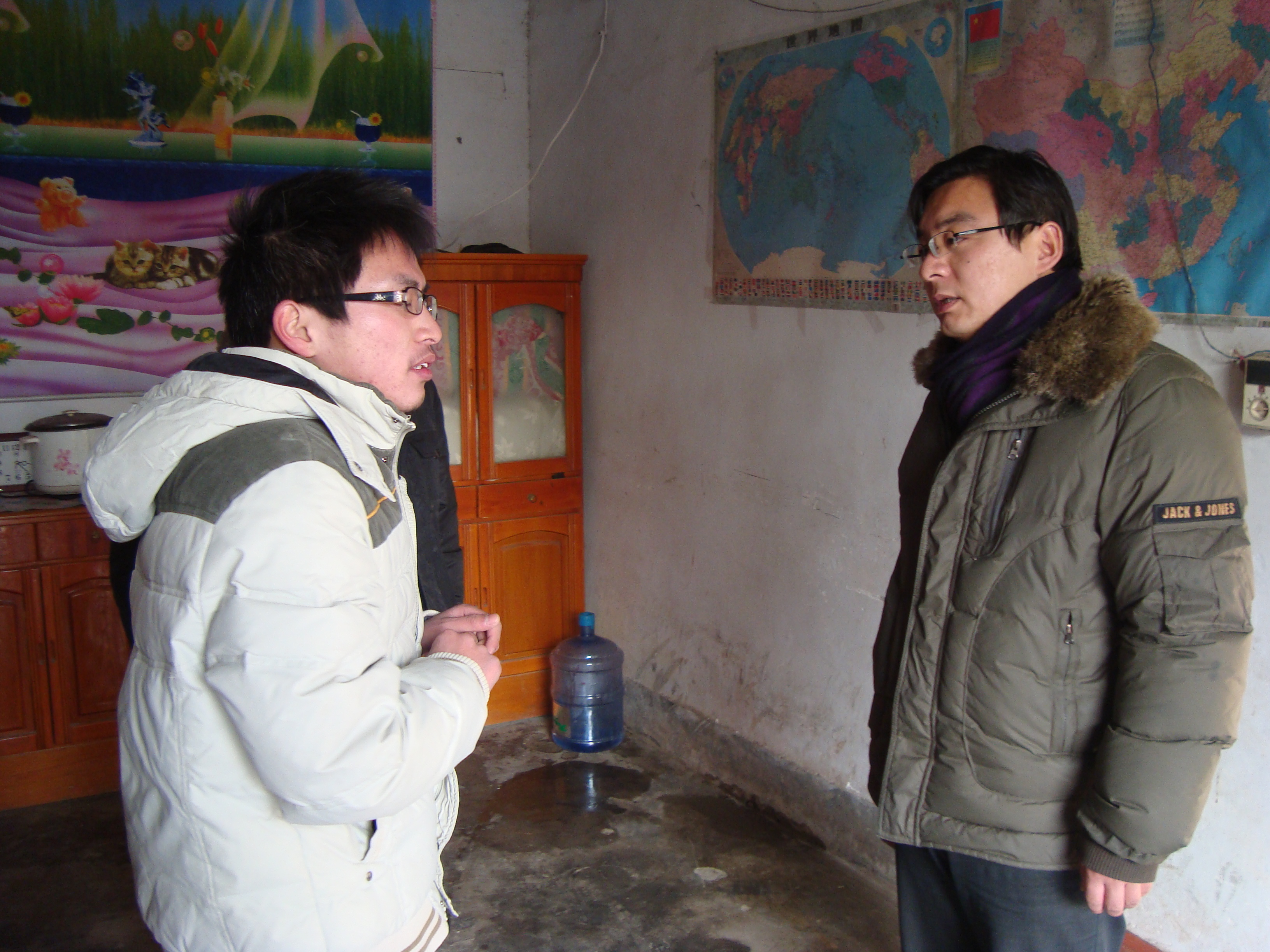 1月12日,带着深切关怀,机电学院党总支副书记朱铁壁带领部分专兼职辅导员专程赴连云港市灌云县向阳乡刘庄和小伊乡河西村,看望慰问机电学院贫困学生模具10-1班刘小明和数控11-1班徐明星同学,分别为他们送上祝福和节日慰问品。