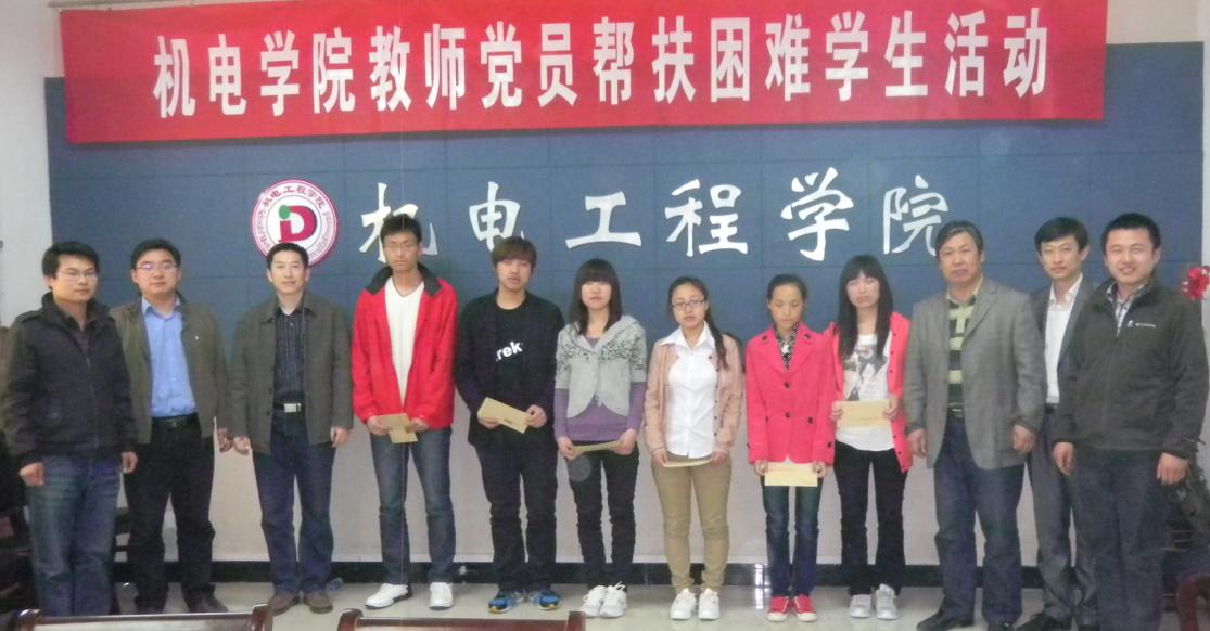 为了深入开展创先争优活动,将“一师一生”活动落到实处,机电学院党总支充分发挥党员教师的先锋模范作用,努力实践共产党员“五带头”:带头学习提高、带头争创佳绩、带头服务群众、带头遵纪守法、带头弘扬正气。2012年4月17日15:00机电学院全体教师党员在会议室中开展了“教师党员帮助困难学生”的主题活动。潘峰书记宣读了本次活动的计划,对党员教师提出了要求:“生活上关心、精神上鼓励、心灵上抚慰、学习上帮助”,力争让每一个有困难的学生能够在学校快乐的学习生活、健康的成长。整个会议分为两个部分:第一部分谈心,教师党员跟学生积极地沟通,了解他们在学校的学习、生活、思想上的需要和困难,对学生提出的问题给出有帮助性的建议;第二部分送温暖,机电学院全体教师党员主动为我院的困难学生捐款,在生活上为他们提供帮助,让他们在原有的水平上有一定的改善。通过此次帮扶活动,使困难学生能及时得到生活、学习、思想上的帮助,教师党员的一点点努力让帮扶行动犹如春雨点点入土,滋润了学生们的心灵,拉近了师生关系,为创建和谐校园、促进学校发展作出了积极地贡献。