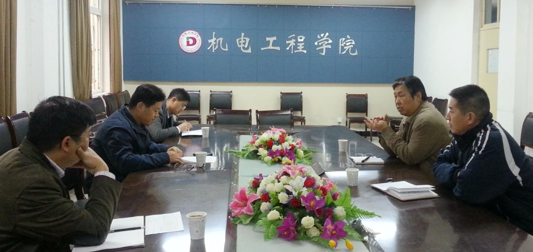 2013年11月12日,校党委书记袁洪志带领教务处、组织部、院办等部门的负责同志一行深入机电学院,就“3+2”转本连读专业的教学情况开展了调研活动,我院张君伟院长、潘峰书记参加了调研活动。