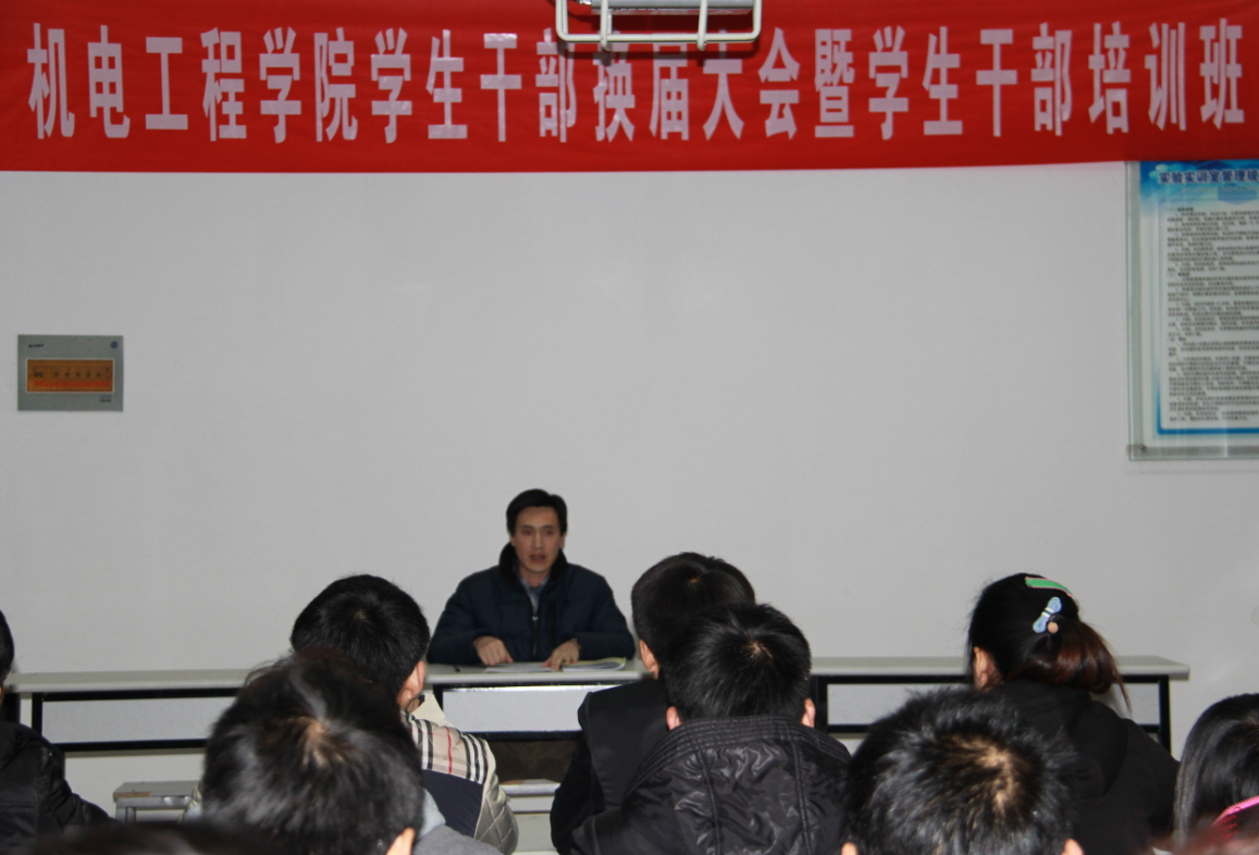 通过推荐、笔试、面试等程序的层层选拔,历时一个多月的机电学院2014届学生干部选拔工作告一段落。新一届学生干部也于2013年12月正式聘任上岗。并于近日在机电工业中心会议室召开了2014届学生干部换届大会暨学生干部培训班,学院18luck网址领导小组成员出席会议。学院分团委、学生会、社联主要学生干部,2012、2013级各班级班长、团支书参加了会议。