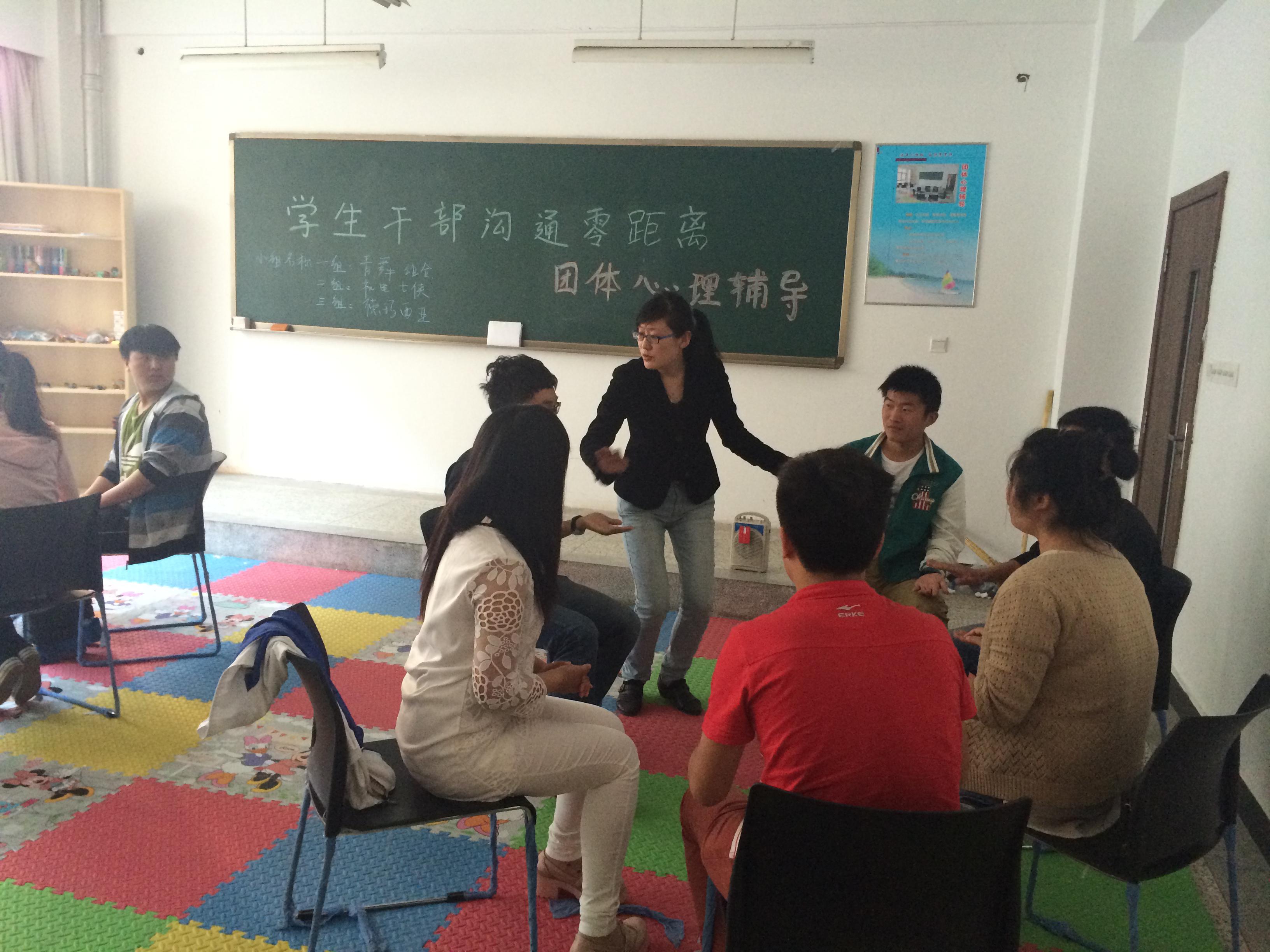 在“5.25我爱我”心理健康教育活动月来临之际,为了提高学生干部的整体心理素质,加强团队成员沟通及团队协作能力、打破心理障碍、拓展思维,机电学院于5月6日下午4:00-5:20在心理健康指导中心举办了学生干部团体心理辅导。本次团体辅导的指导老师是机电学院心理辅导员邵明颖。参加人员为机电学院学生会、分团委学生干部共20名。本次活动的目的是引导学生在团队训练过程中认识自我、提高自我,学会沟通、交流,加强团结、协作能力。