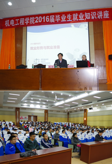 2015年11月1日晚上7:30,机电工程学院特邀请我校招生就业处宋丹萍处长在学术报告厅做了关于2016届毕业生就业形势和就业指导的专题报告,机电工程学院党总支副书记鹿毅主持会议。参会的对象有机电工程学院2016届全体毕业生和机电工程学院部分毕业班带班辅导员。