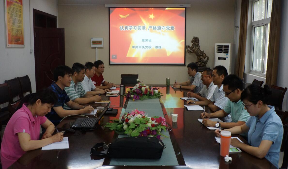 7月8日上午,机电学院党总支理论学习中心组在学院会议室开展“两学一做” 中心组学习活动,认真观看了中央党校教授张荣臣的专题讲座:认真学习党章 严格遵守党章。学习活动由机电学院党总支书记潘峰主持。