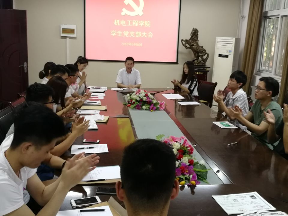 6月6日下午5:00,机电学院学生党支部召开了预备党员转正大会,参加此次大会共18名党员。经过预备党员宣读转正申请、培养联系人的介绍和在会党员党员充分讨论,5名正式党员进行公开投票,一致同意王腾飞、张迪、徐珂3名预备党员按期转正,三名新转正的党员同志也就未来的学习工作进行表态,表示要积极践行党员标准,树好党员形象。最后,潘峰书记结合参观徐工集团党建学习活动心得对13名毕业生党员及在座的党员们提出了要求,希望他们在未来的工作当中能够时刻牢记展示个人风采,把对党员的认识提升到新的高度,并积极付诸行动,并强调毕业生党员们要在毕业季站好最后一班岗,充分发挥学生党员的先进性。