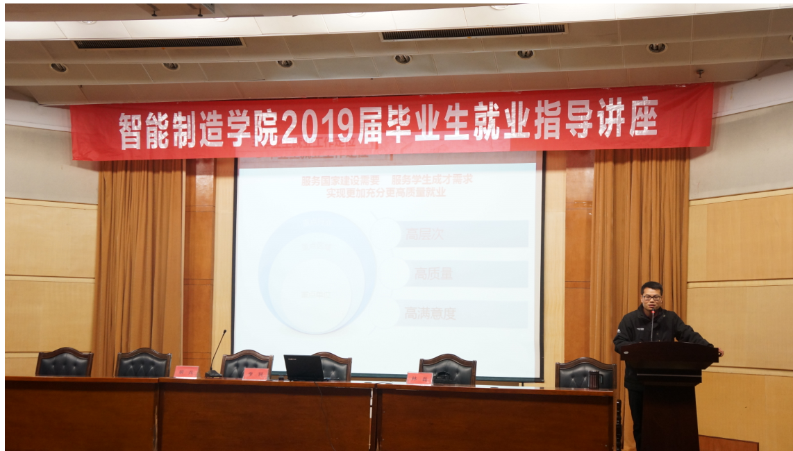 2018年11月6日晚上7点,智能制造学院隆重召开2019届毕业生就业指导讲座,新利18官方网站多少副书记李珂老师、智能制造学院办公室主任胡兵老师,智能制造学院2019届全体毕业生参加了会议,此次会议由林磊老师主持。