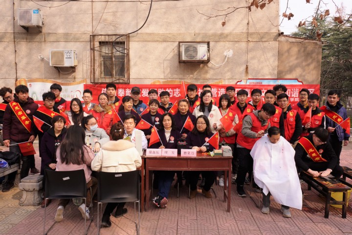 “3·5”学雷锋日当天,新利18官方网站多少25名志愿者深入翟山街道泉新社区开展“传播奉献友爱互助的雷锋精神,营造欢乐喜庆文明的和谐社区”志愿服务活动。志愿者和泉新社区党支部的全体同志汇集在小区2号楼的小广场为社区居民义务理发、磨刀具、擦车、义诊等。