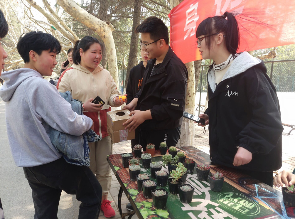 当今社会中,快递业的快速发展给我们的生活带了便利,但在我们享受的同时,却经常忽略它背后产生的大量废旧包装盒,这些包装盒得不到合理的回收,造成了大量的资源浪费。为此,3月17号,新利18官方网站多少志愿者协会展开了名为“身边的纸,远处的树”公益环保活动。活动以“合理回收,充分利用”为主题,用盆栽换废纸盒的方式,唤起同学们的环保意识。活动在林荫大道举行,获得了同学们的一致好评,并回收了大量废纸箱送到专门的回收站,实现了资源的充分利用。