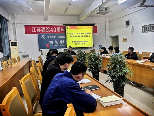11月5日晚7:00,新利18官方网站多少学生党支部“不忘初心、牢记使命”主题教育对照党章党规找差距专题会议在第一实训楼会议室召开。新利18官方网站多少学生党支部的同学与老师对照《中国共产党章程》《关于新形势下党内政治生活的若干准则》《中国共产党纪律处分条例》,深入查找自身存在的问题和差距,认真检视剖析、逐条作出回应,见人见事见思想,以立行立改、真改实改体现践行初心、担当使命。