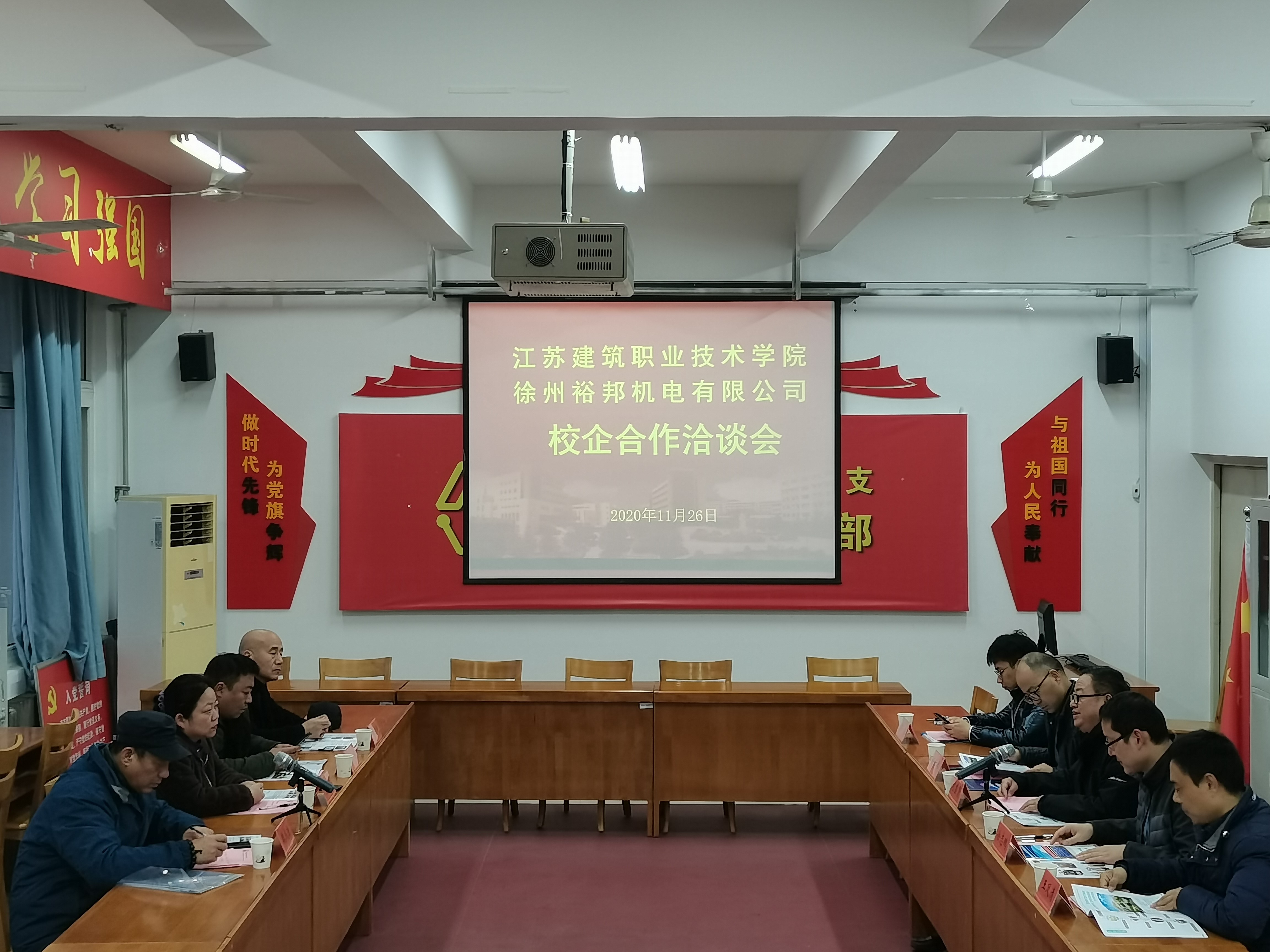 2020年11月26日,在第一实训楼新利18官方网站多少18luck网址会议室,徐州裕邦机电有限公司和新利18官方网站多少举行了校企合作洽谈。徐州裕邦机电有限公司总经理曹询、业务经理胡宁、人力资源部主任魏成法和新利18官方网站多少党总支书记刘盛贤、江苏建筑职业学院教务处副处长徐志鹏、中国矿业大学教授谢方伟、新利18官方网站多少党总支副书记王凤清出席会议,就业办主任林磊参加了会议,会议由党总支副书记王凤清主持。