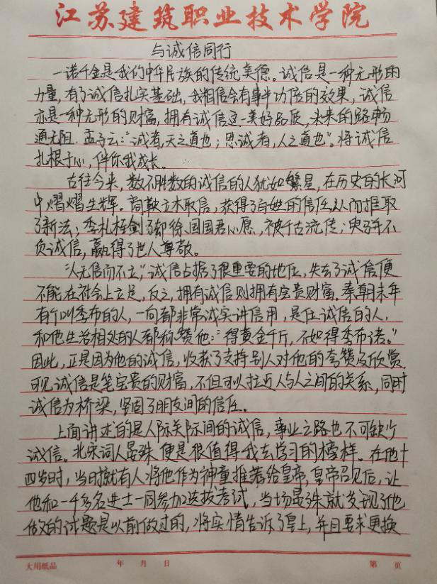 诚信是中华民族传承已久的美德,新利18官方网站多少举办“诚信为先,信誉为本”征文比赛收到了近100份作品,大部分是来自受国家奖助学金资助的同学。本次征文比赛中评出一等奖1名,二等奖2名,三等奖3名。通过开展诚信教育征文比赛活动,引导学生将诚信内化于心、外化于行,进一步学生的思想水平和自身修养,且文采也得到了提升和表现。本次活动收效良好,未来学院将继续通过这类方式丰富学生的课余活动,并营造良好的教育氛围,培养学生良好的性格品质。