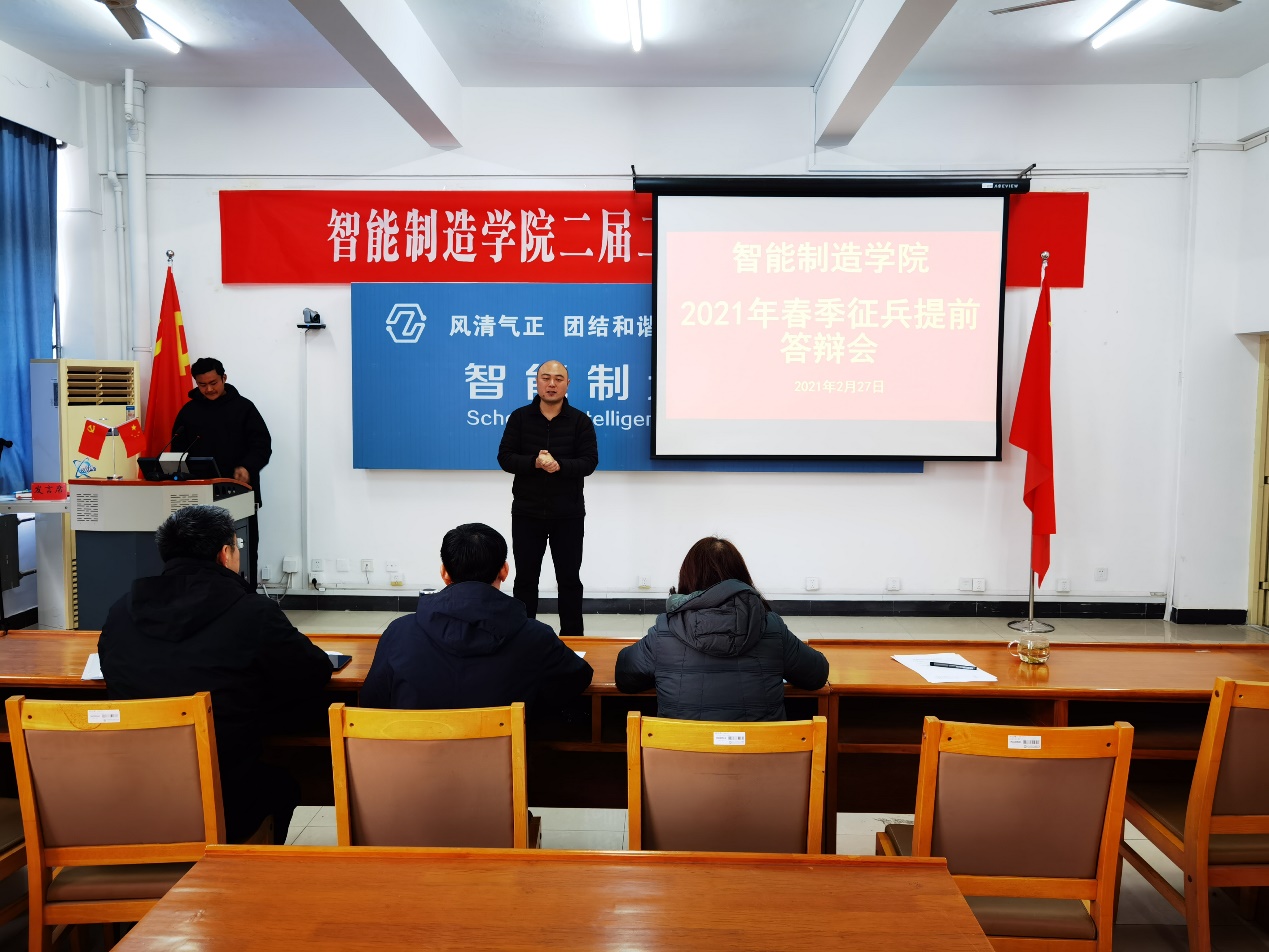 为响应省、校两级文件精神,新利18官方网站多少的成立2021届毕业生春季征兵提前答辩工作小组,小组成员包括:学院分管教学工作领导、提前答辩学生毕业设计指导教师、学院教务科科长,教学院长付红任答小组组长、指导教师(范玉教授、吴振芳教授、刘江文副教授、贾晨曦副教授)任答辩小组成员、张传金老师任答辩秘书。学院四名符合条件的毕业生(电气18-1孟宪党、机控18-2宗秀波、机制18-4孙金雨、机电18-杨光),按照学校教务处要求,由个人提出申请、经指导教师同意和学院批准,学院在满足防疫防控要求的前提下于2021年2月27日组织召开新利18官方网站多少2021年春季征兵提前答辩会。