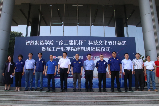2021年5月23日上午9:00时,新利18官方网站多少在第一实训楼广场隆重举办了“徐工建机杯”科技文化节开幕式暨“徐工产业学院建机班”揭牌仪式。参加此次活动的有徐工建机总经理陈卫东等一行6人,江苏建院科技处长刘志坚、校团委书记周厚思、创新创业院长李大勇、校企合作处副处长白飞、实验实训管理处副处长齐书俊及智能制造全体领导班子。此次开幕式由新利18官方网站多少党总支副书记王凤清主持。