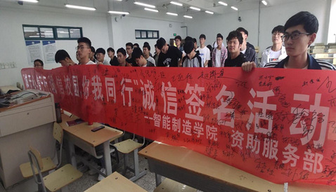 此次活动内容积极向上,氛围良好,建档同学们有序排队入场,积极响应参加此次活动,在横幅上庄严签下自己的名字,给大家展示了我院学生良好的素质形象。同时也使同学们更加注重诚信教育对大学生活的重要性,给他们的在校生活增添了一份色彩。