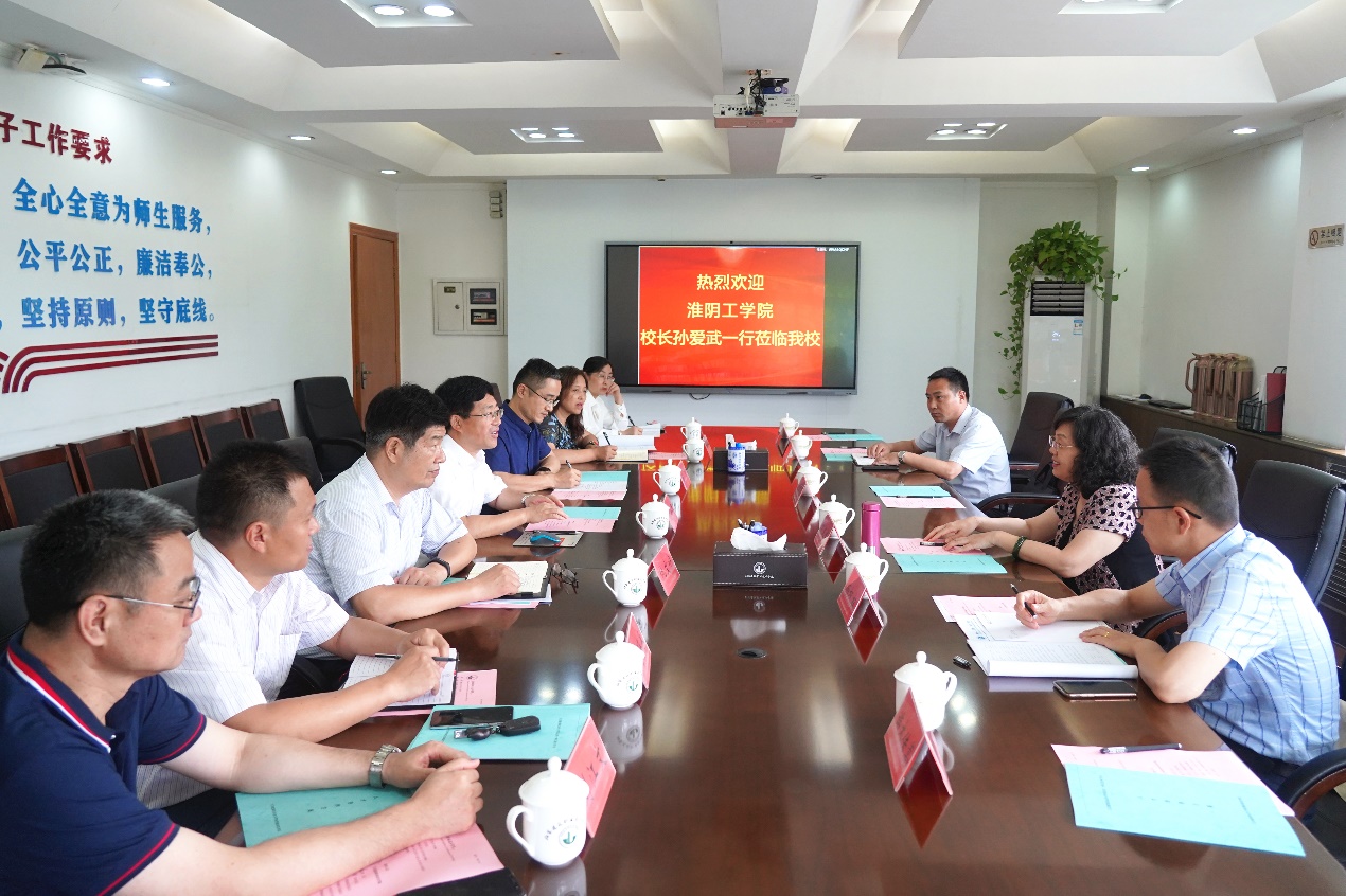 6月26日下午,淮阴工学院校长孙爱武一行6人来我校进行现代职教体系3+2合作项目调研。院长沈士德教授、教务处处长戚豹、新利18官方网站多少部门负责人、专业主任、相关教师参加了座谈交流。