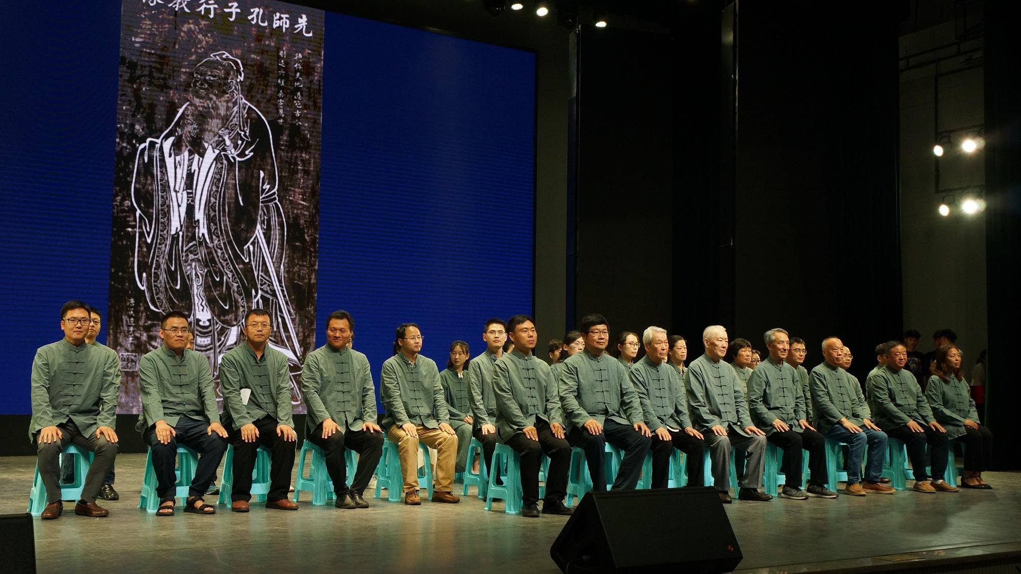 师生先向万世师表,大成至圣先师孔子行礼。大家面向先师像,鼓起后正衣冠、拱手、拜、兴、再拜、兴,师长转身,学生落座。