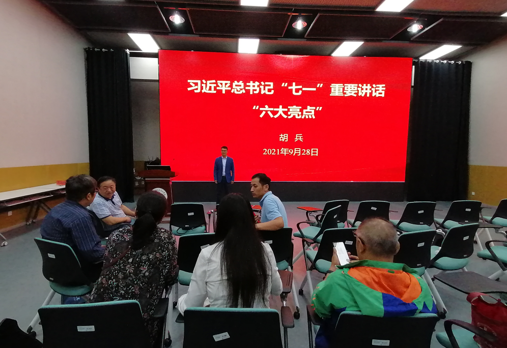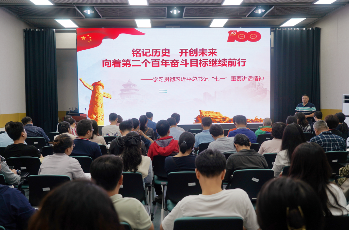 会上,中心组成员集体观看了习近平总书记“七一”重要讲话节选视频,深刻领悟讲话的深远内涵和伟大意义。此后,中心组成员和全体教职工共同学习听取了副院长蒋兆峰以《学习贯彻习近平总书记“七一”重要讲话精神》为题的宣讲报告,他深刻阐释了实现中华民族伟大复兴的百年奋斗主题,深情回顾了中国共产党在百年光辉历程中创造的四个伟大成就,详细讲解了伟大建党精神的深刻内涵,深刻剖析了在百年奋斗中积累的“九个必须”的宝贵经验等一系列首次提出的重大思想、重大观点、重大论断。最后,办公室胡兵同志借鉴《习近平总书记“七一”重要讲话的六大亮点》将本次学习带入学习研讨环节,参会成员结合自身的学习体会,畅所欲言,充分交流,进一步提升学习成效,使各自的思想得到更深的洗礼和更高的升华。