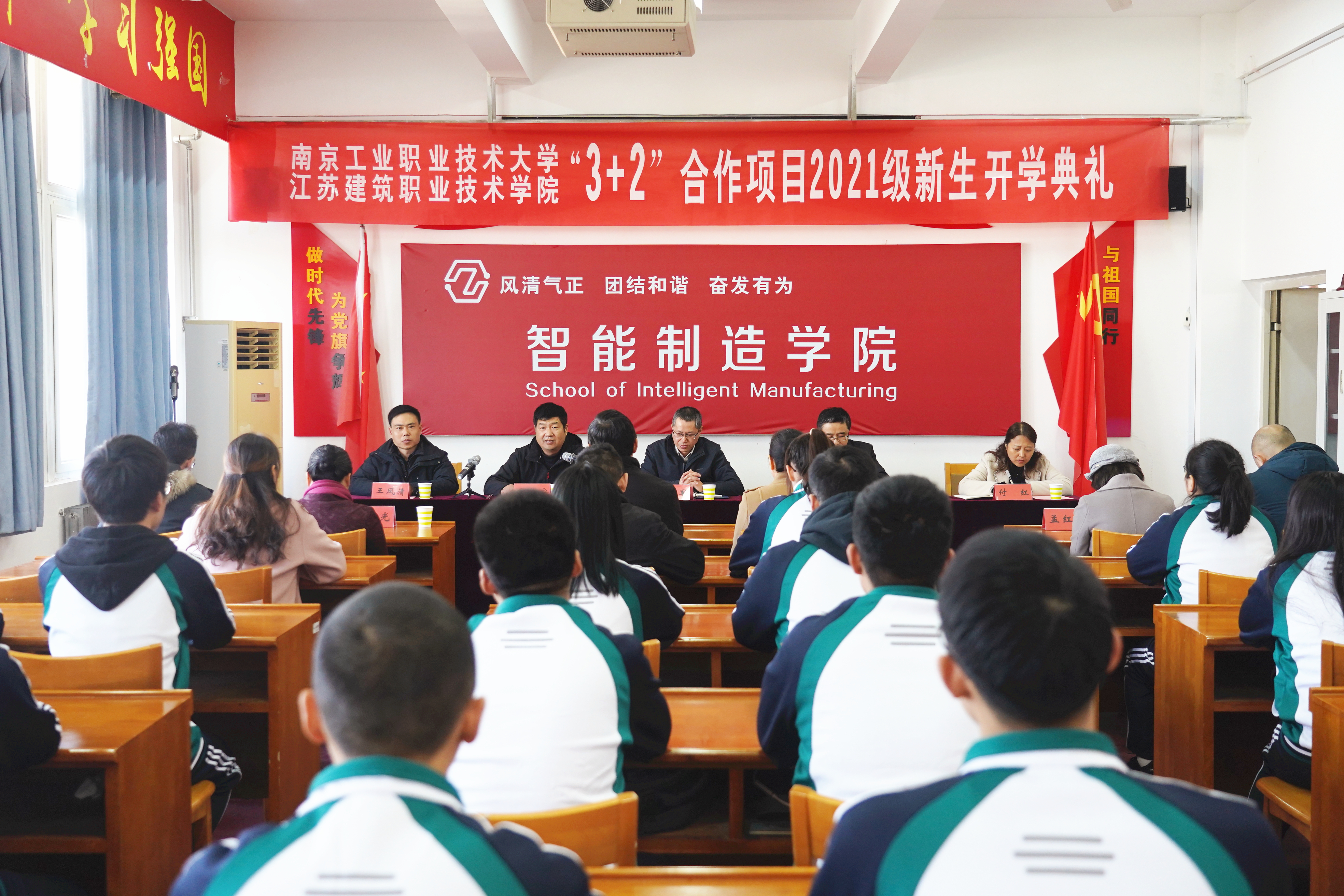 11月24日下午,我校与南京工业职业技术大学“3+2”分段培养项目班电气自动化专业2021级新生开学典礼在第一实训楼1103室举行。南京工业职业技术大学教务处处长王红军、我校教务处处长戚豹、新利18官方网站多少党总支书记刘盛贤、院长仇文宁、副书记王凤清、副院长付红和公共基础基础学院相关学科负责人出席典礼,专业主任、班主任等教师代表及38名新生参加典礼。典礼由戚豹主持。