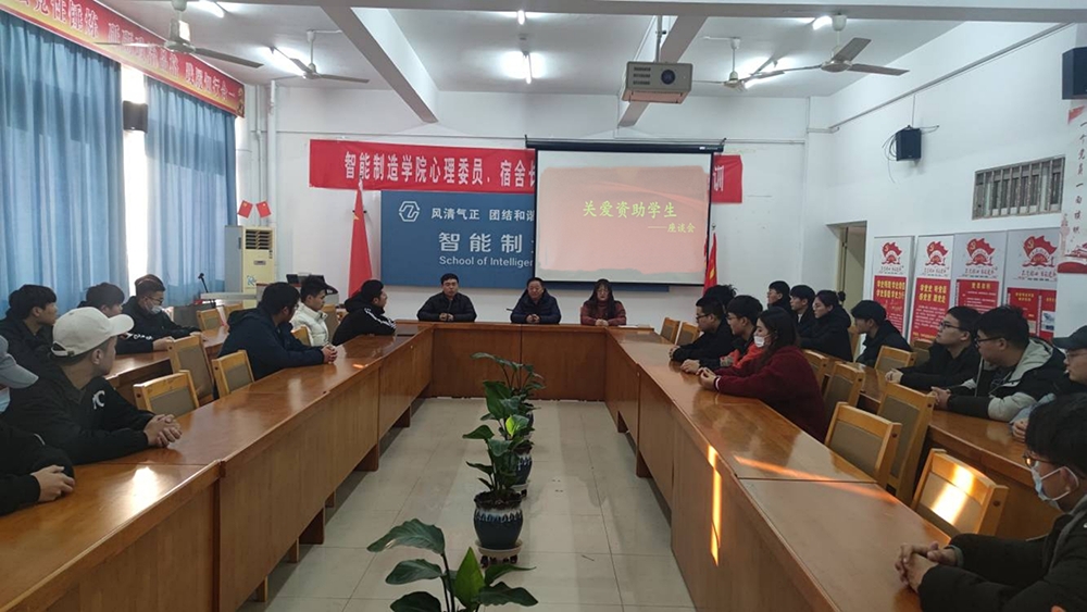 为勉励受资助学生知恩图报、矢志奋斗,2021年12月21日15:30新利18官方网站多少在第一实训楼504召开关爱资助学生座谈会,49名受资助参加此次会议。