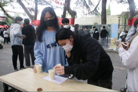 本次活动共分为三个小活动,方便同学们自行选择心仪的活动参与。为了确保活动能够有序的进行,现场安排了工作人员进行指挥一边的同学们在便签纸上写下自己对未来的期许与祝福、对未来的自己想说的话,并将写好的便签纸贴在活动横幅上。而在另一边上负责人准备3个网球,请同学们向指定木桶进行投掷(要求网球不弹出)共投掷三次,并给成功的同学对应的奖品。在前两个活动如火如荼的进行的同时,第三个活动人气也颇高,负责人准备了一次性水杯,指引参加的两名同学轮流往水杯中倒水,第一个溢出水杯的即为输家,赢得同学可以获得小礼品。在所有的活动都完成后就可以根据指引到签到员处签到。