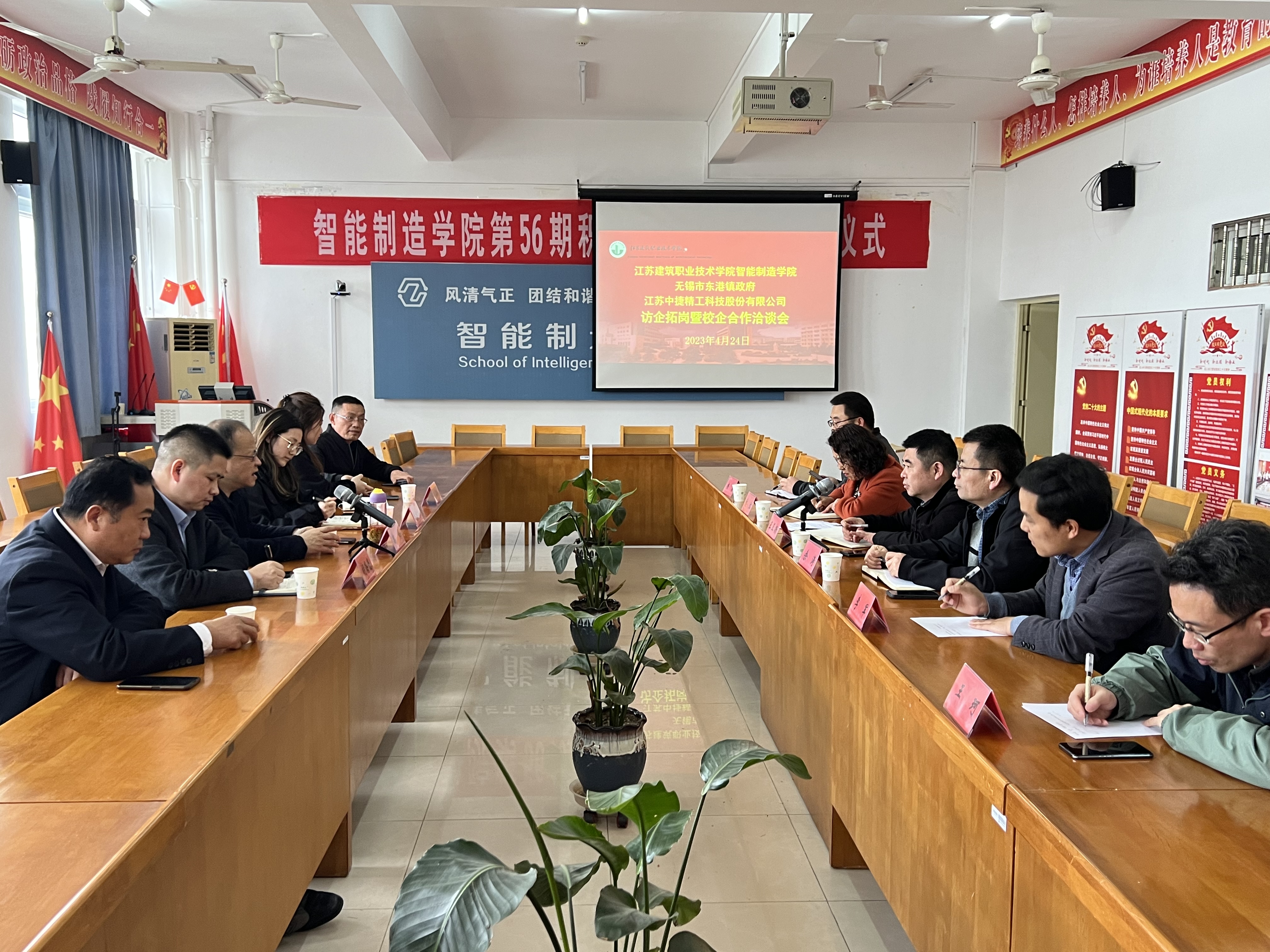 2023年4月24日下午,在第一实训楼新利18官方网站多少504会议室,新利18官方网站多少和无锡市锡山区东港镇人民政府、江苏中捷精工科技股份有限公司举行了校企合作洽谈。18luck赞助校企合作处余涛处长、新利18官方网站多少党总支书记王正扬、副院长付红和东港镇镇长高峰、江苏中捷精工科技股份有限公司董事魏敏宇、人事经理蒋苏黔、分公司工厂总经理胡海亮出席会议,专业主任王珂、杨恩和就业辅导员李军列席了会议。