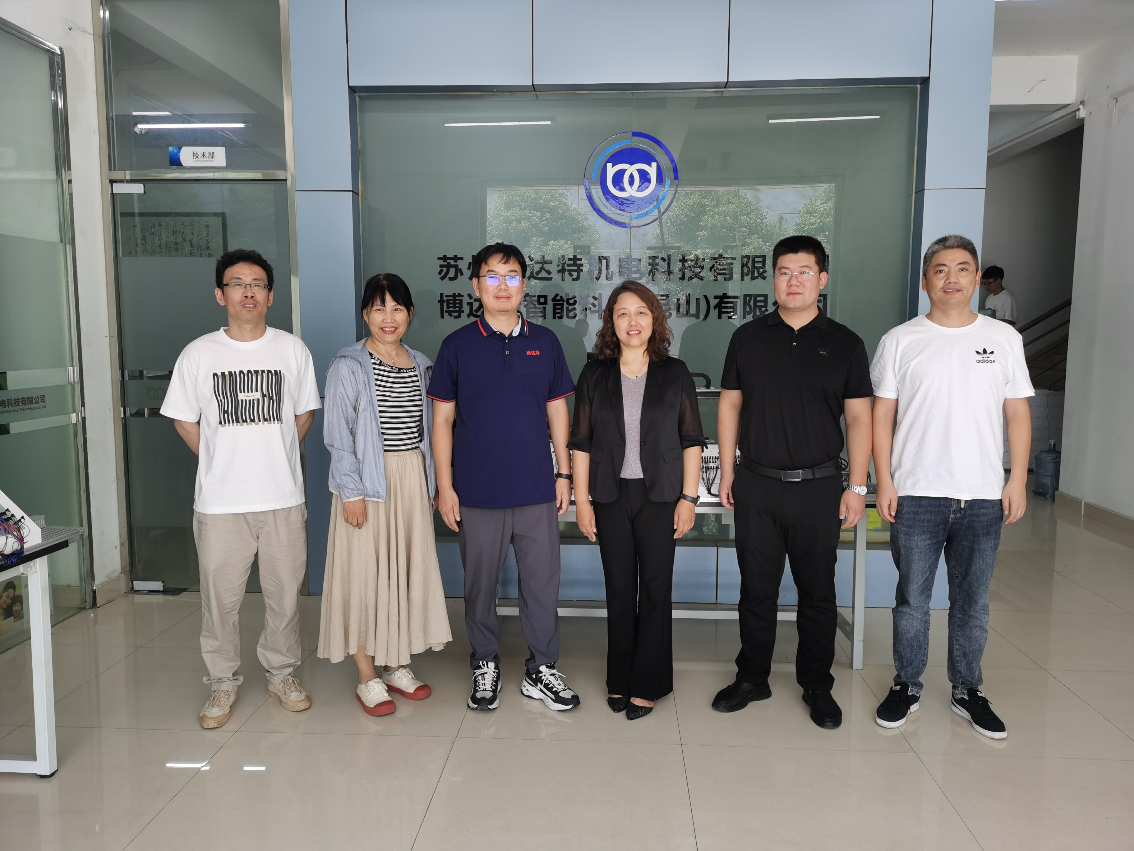 8月16日,新利18官方网站多少副院长付红带队赴苏州博达特机电科技有限公司开展校企合作洽谈,该公司总经理浦恩帅、销售经理张业状参与交流活动。
