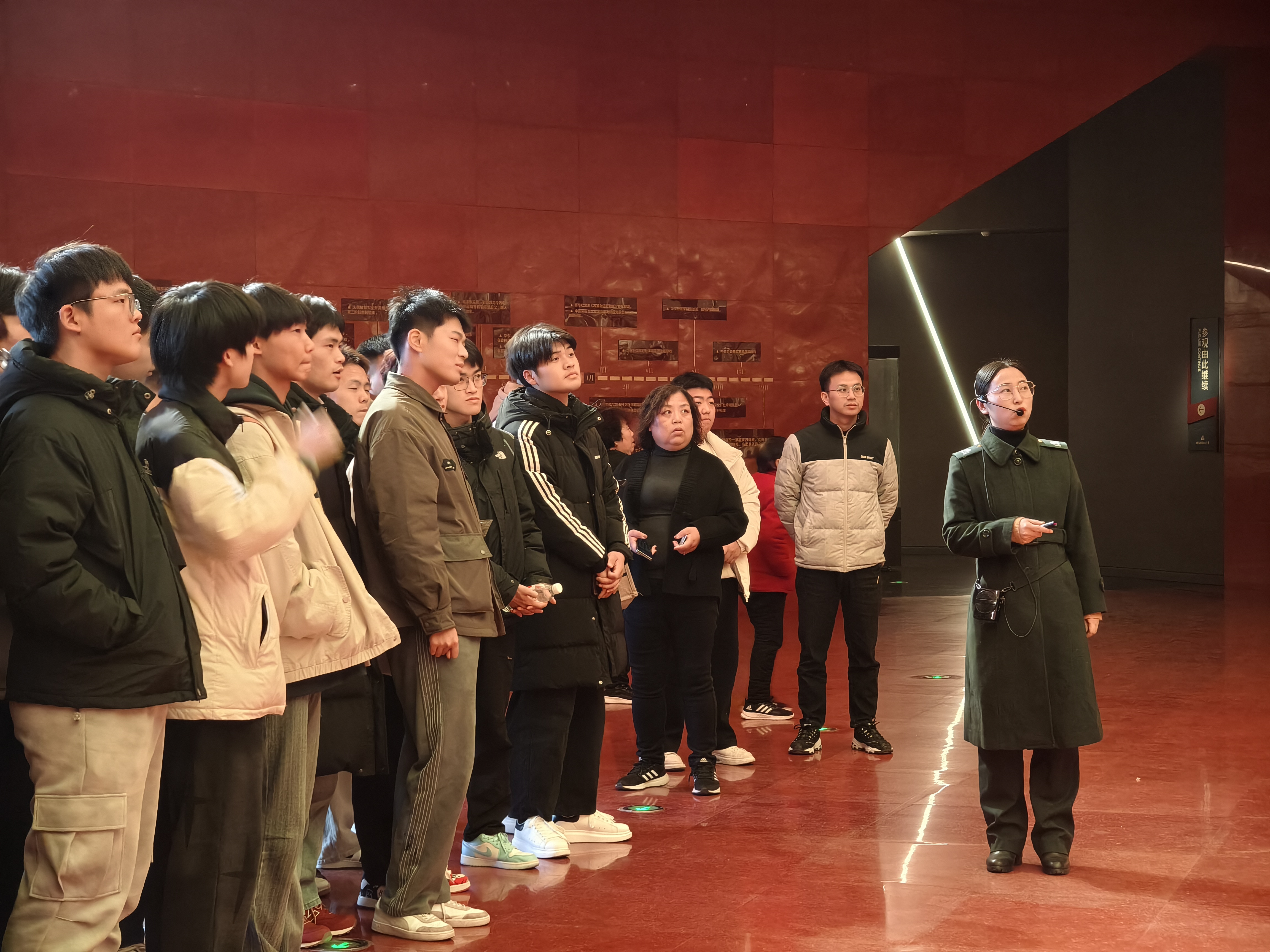 在专业讲解员的引领下,师生们庄重地参观了淮海战役纪念馆。馆内陈列着大量珍贵的历史文物、图片和资料,生动地再现了淮海战役的艰苦历程和伟大胜利。同学们认真聆听讲解,不时驻足凝视,不时陷入沉思,仿佛穿越回那个战火纷飞的年代,深刻感受到了革命先烈们为了国家和民族的利益,不惜牺牲生命的崇高精神。
