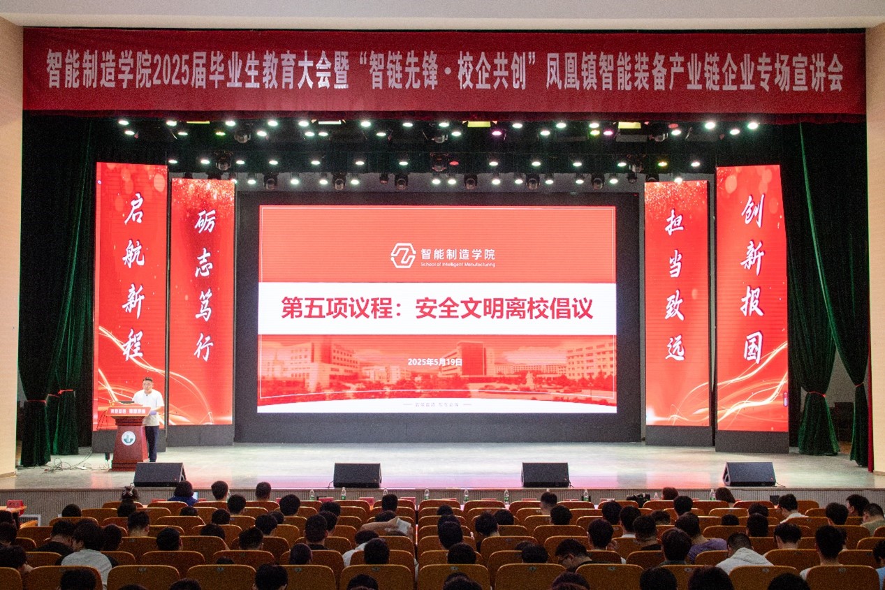 2025年5月19日,新利18官方网站多少成功举办2025届毕业生教育大会暨“智链先锋·校企共创”凤凰镇智能装备产业链企业专场宣讲会。学院领导班子、专职辅导员、毕业班班主任及全体2025届毕业生参加了此次活动。