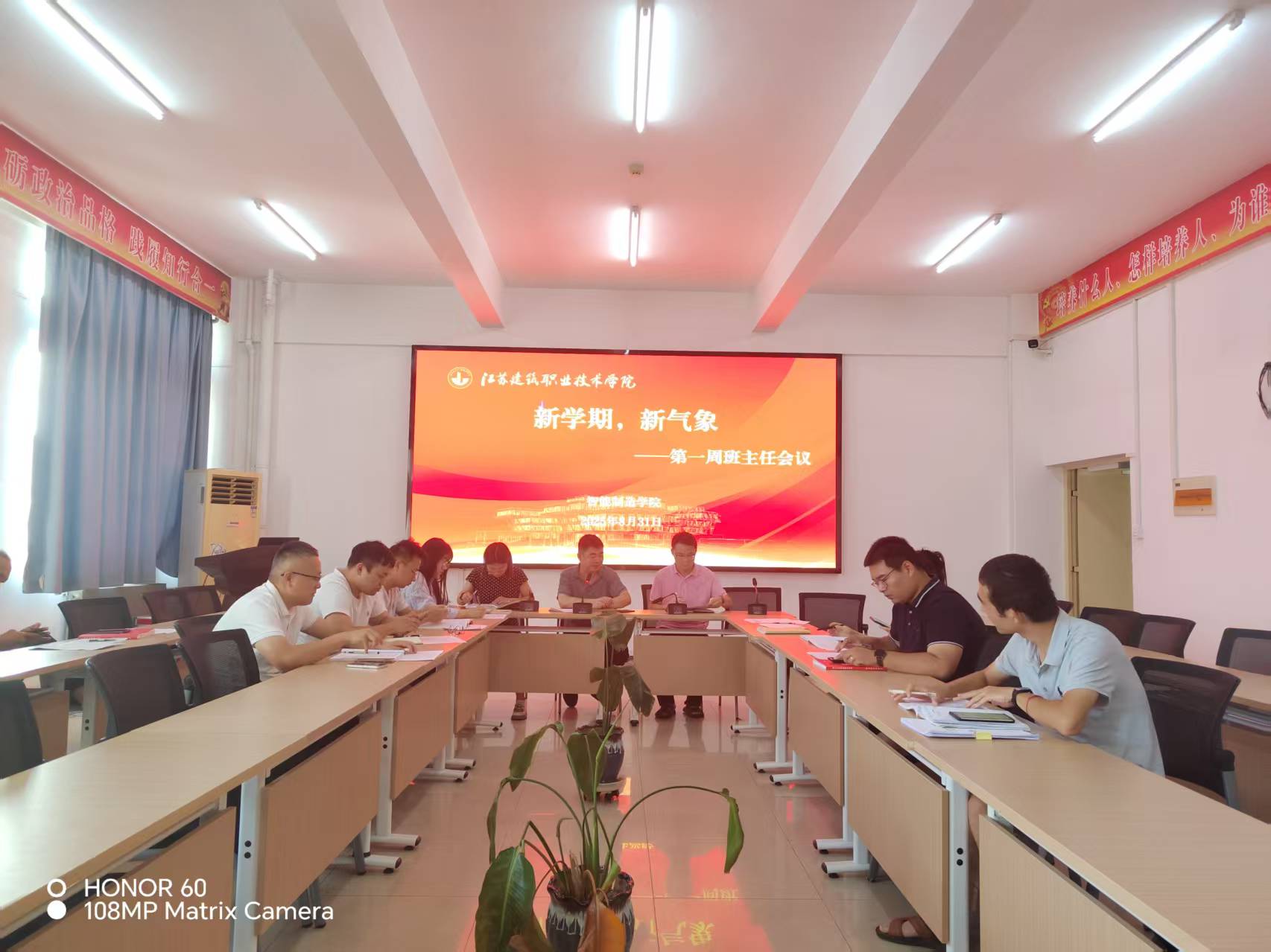 8月31日,新利18官方网站多少在第一实训楼504会议室召开秋季学期第一次班主任例会,学院党总支书记王正扬、副院长李雨潭、副书记张志荣及全体班主任参加会议。